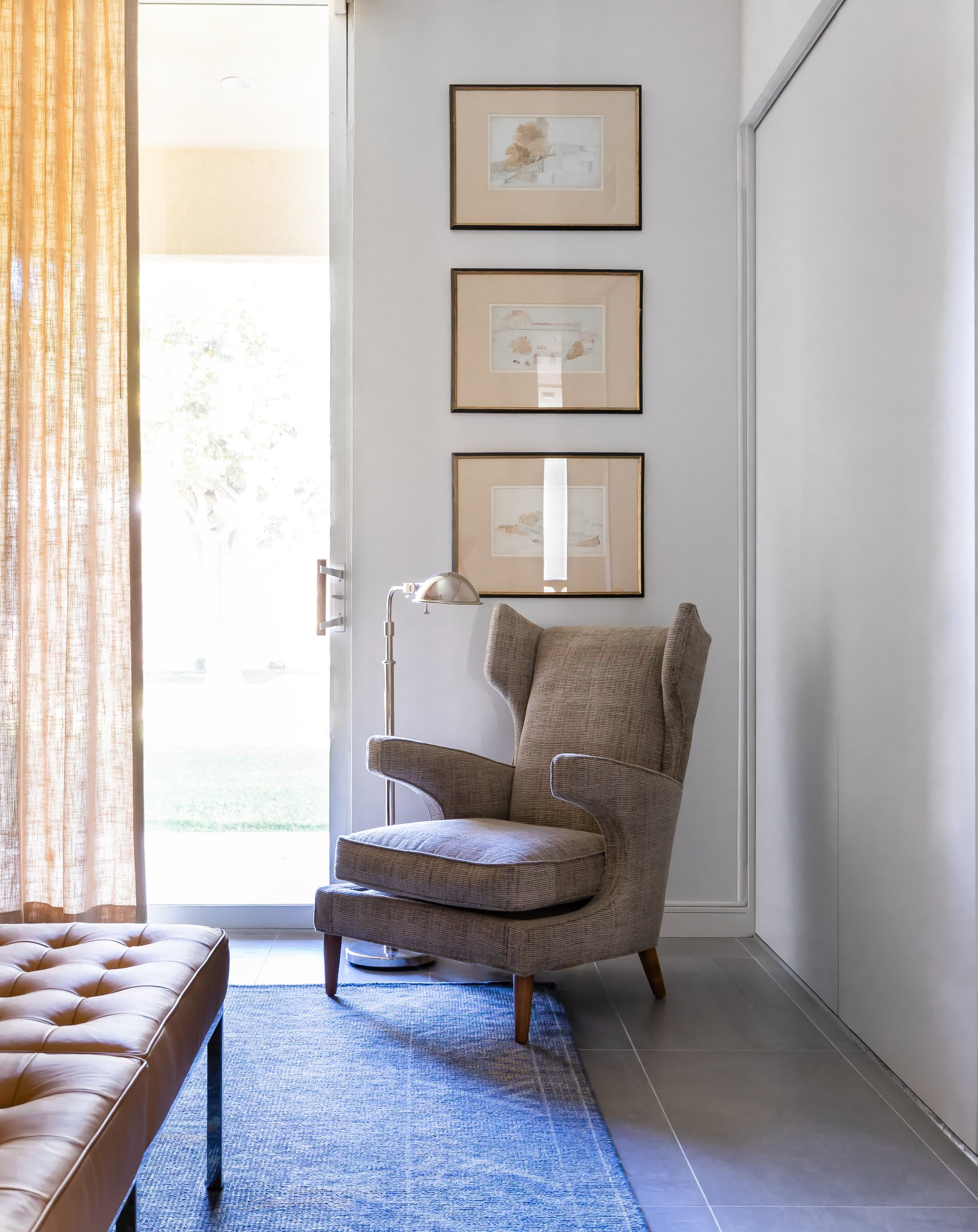 Because these clients spend half the year in Scotland, we wanted to give them our take on the Palm Springs ‘classics:’ vintage Baughman chairs, Laurel Company lamps, and a Probber-style sofa. Florence Knoll and Saarinen round out a furnishings collection drawn straight from the mid-century.