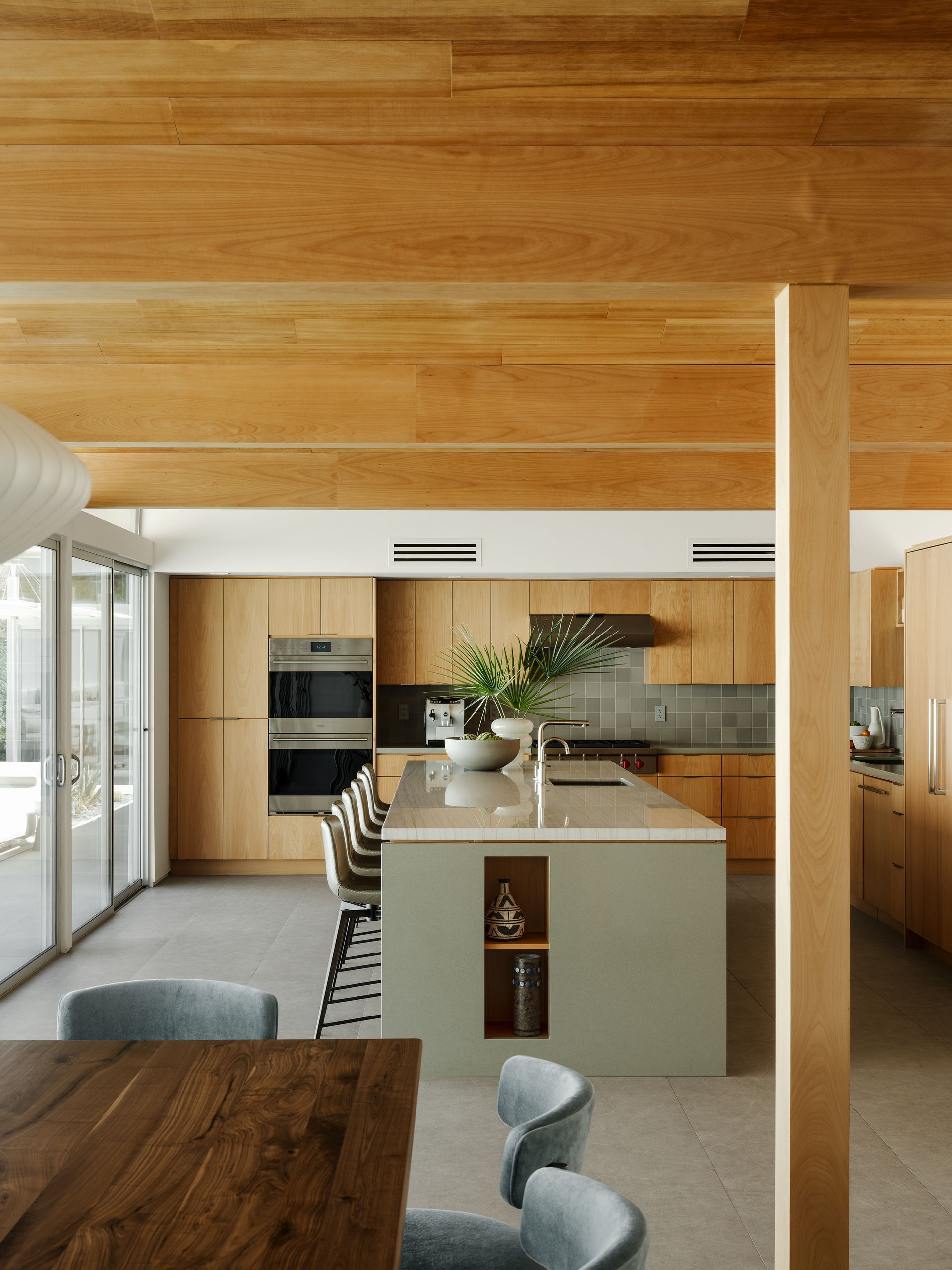Published in the February 2024 issue of Palm Springs Life. It looks like a pristine circa 1961 William Krisel— and it is, except for the 'pristine' part. Previous owners boxed in the folded plate to make it more 'contemporary' (and also added decorative neon). Our architect's goal was to remaster the home during a three year to-the-studs restoration. Our job was to make sure the result wasn't simply a period piece. This was a fully custom project, and we wanted it to feel specific to the owners.