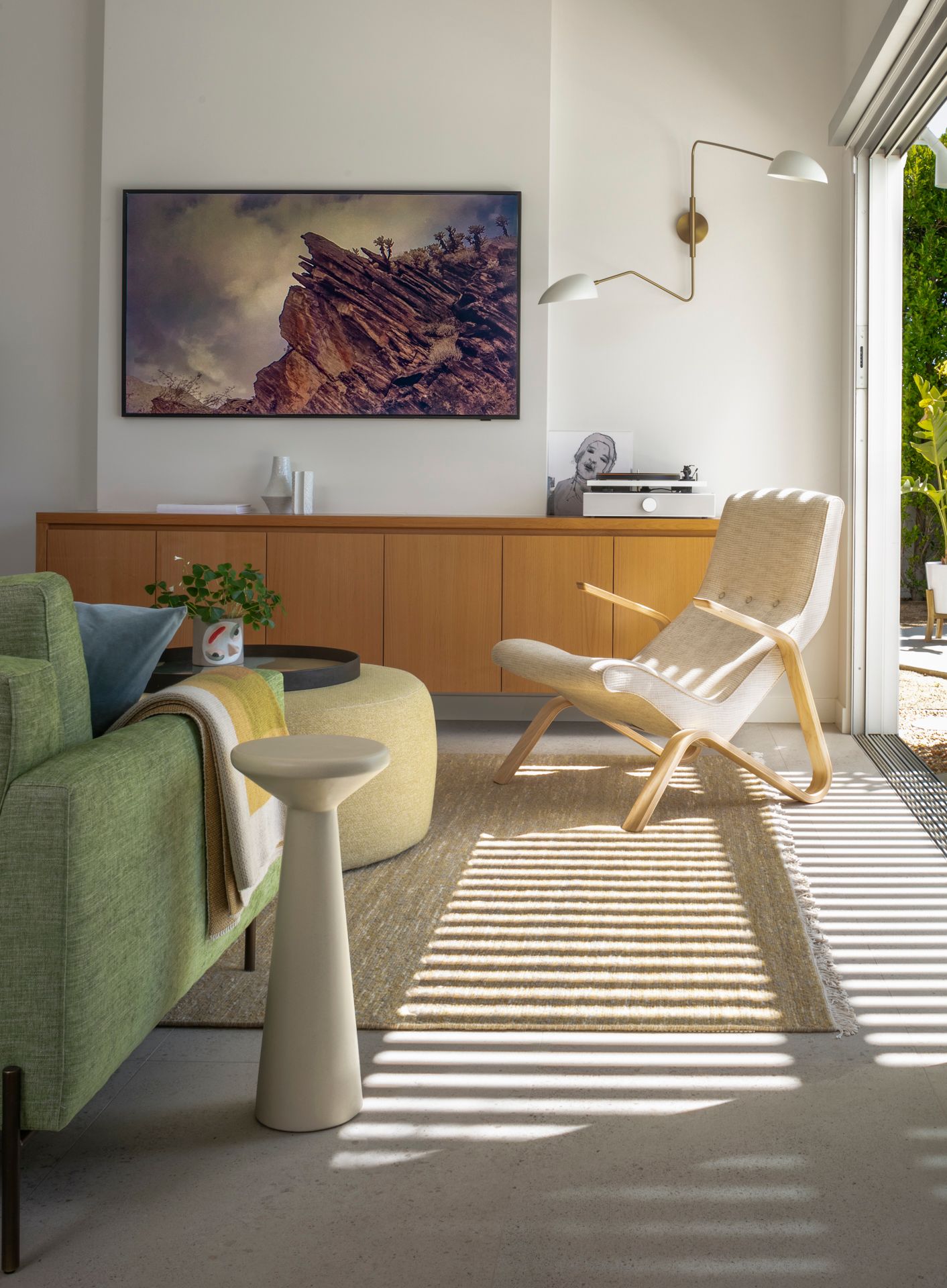 Opening the back of the house with a long run of stacking sliders, as Nichols did, allowed us to realize the indoor/outdoor lifestyle that Palm Springs promises. We love that the clients can host dinner for 12 by using the adjacent dining areas.
