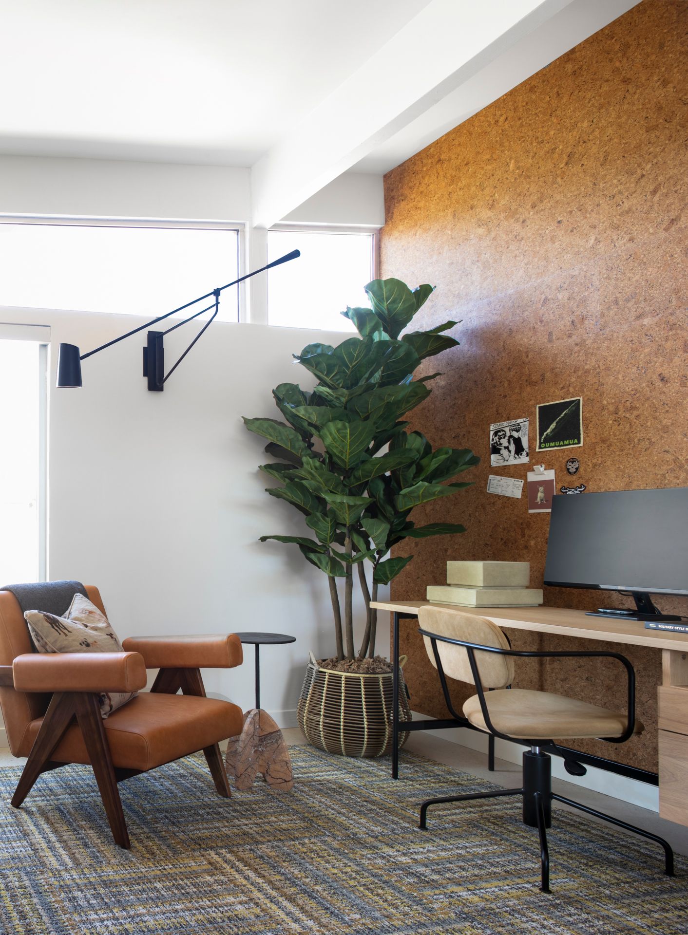 Walls become valuable real estate in the Alexander’s compact footprint. Rather than frame art, we ‘scaled up’ with murals, cork and tile to bring these spaces to life.