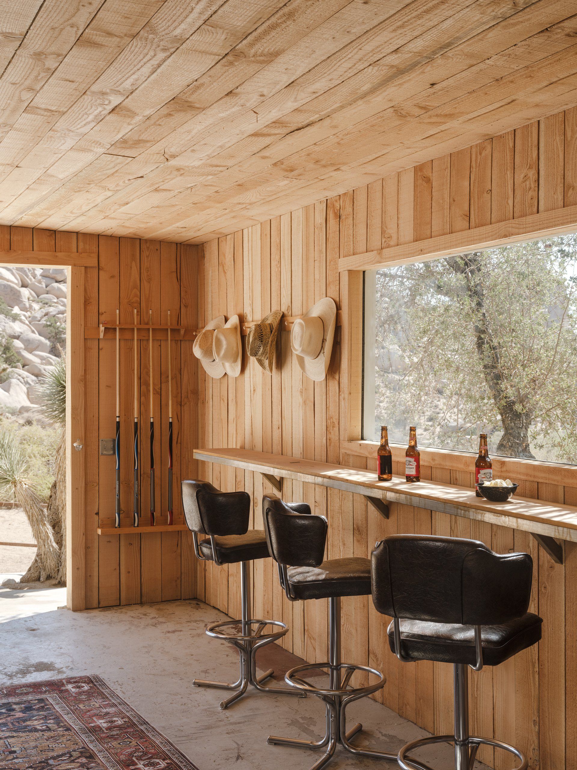 The bar(n) sets the mood. Wood-cladding the interior married it to the main house. A more-or-less free pool table was coupled with vintage lighting and barstools. Hardwearing rugs and materials were used throughout the project. And a flea market painting tells the bar-room story better than we ever could.