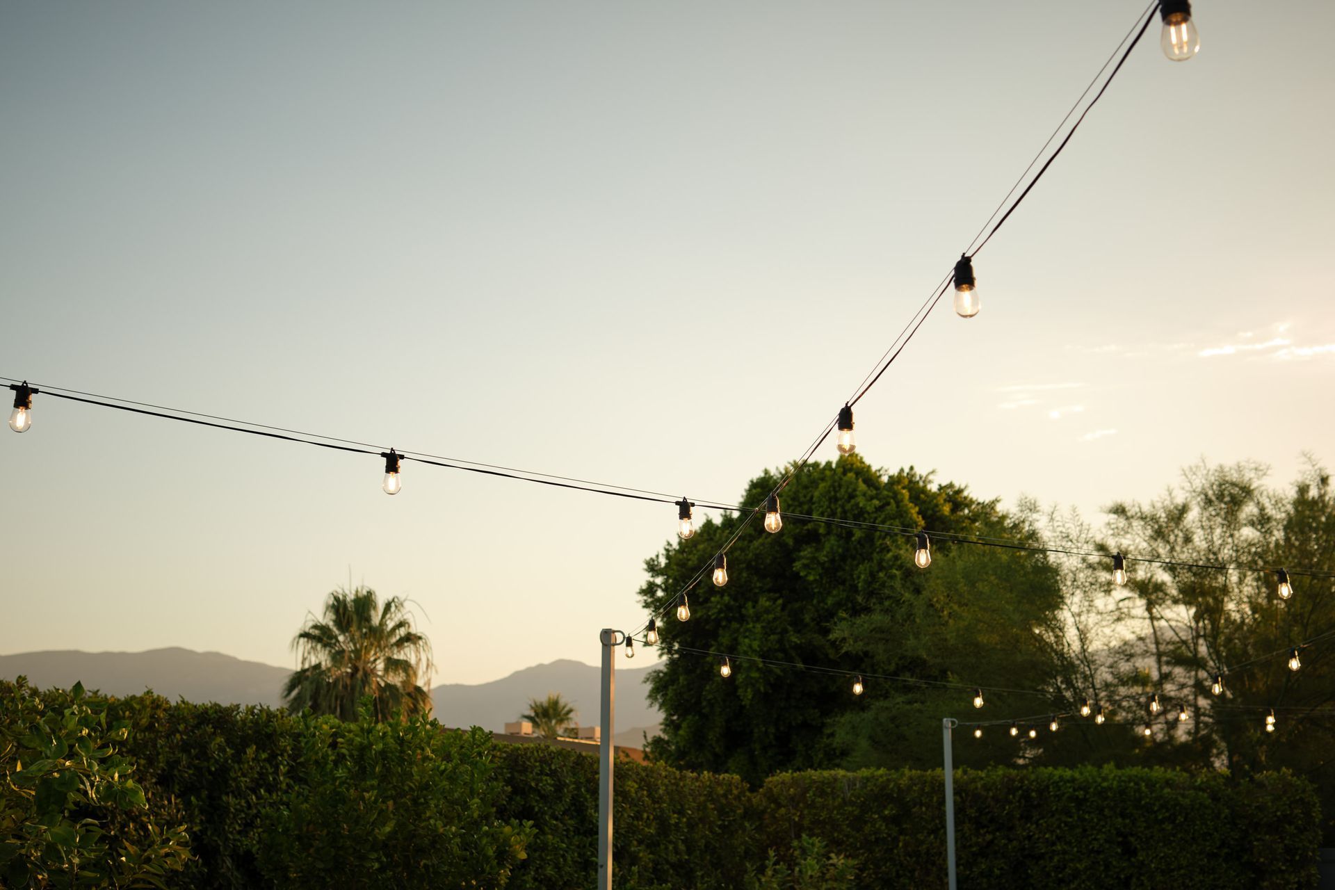 The house was built on an oversized lot, and the extensive side yard was undeveloped— even though it had the best mountain views. We removed a small in-ground fire pit (the owners have adorable small pups) from the existing pool patio. That patio was then extended into the side yard to take advantage of those mountain views; it’s the perfect place for chaises. A new, much larger fire bowl was added (circled by a round pad), outfitted with easily-repositioned rockers and lounge chairs. A row of citrus and bocce court—complete with piazza lights—round out the space.